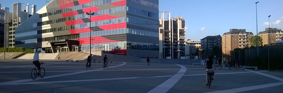 Si salta in sella per l’ultima meta: zona Mac Mahon, passando dalla piazza Gino Valle che sembra fatta apposta per correrci in bici, scendiamo giù verso il Nuovo Portello e poi destra verso piazza Prealpi.